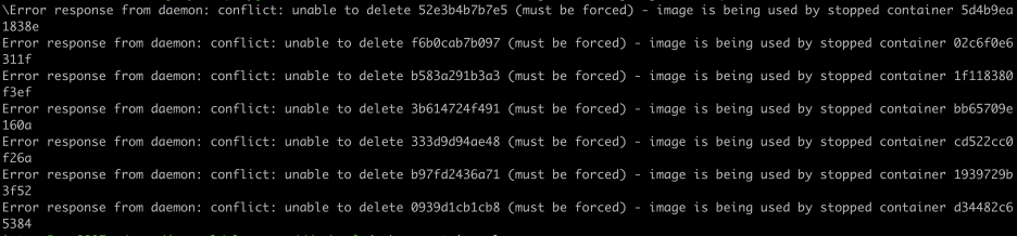 해당 이미지를 기반으로 동작했던 container가 남아 이미지를 삭제할 경우 에러가 발생한다.