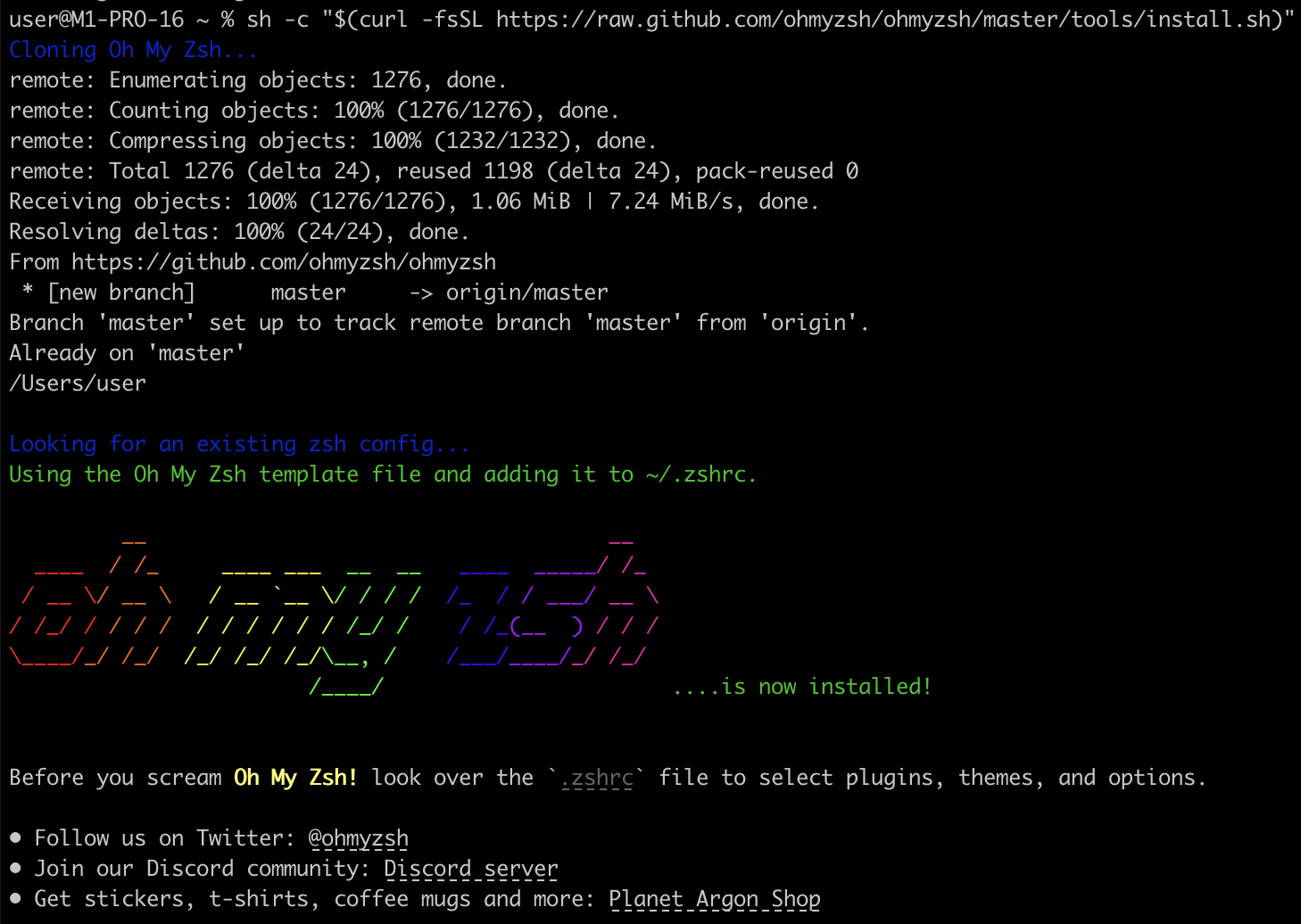 sh -c "$(curl -fsSL https://raw.github.com/ohmyzsh/ohmyzsh/master/tools/install.sh)"