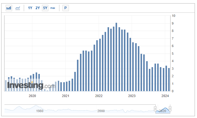 24년 2월 CPI(Consumer Price Index)는 3.1%로 나왔다.