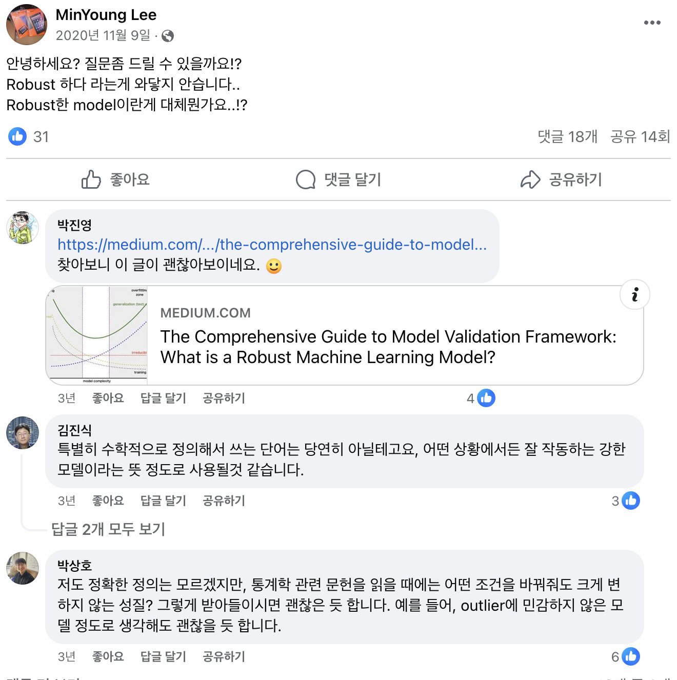 통계나 ML 알고리즘 등을 보다보면 robust라는 표현이 종종 등장한다.