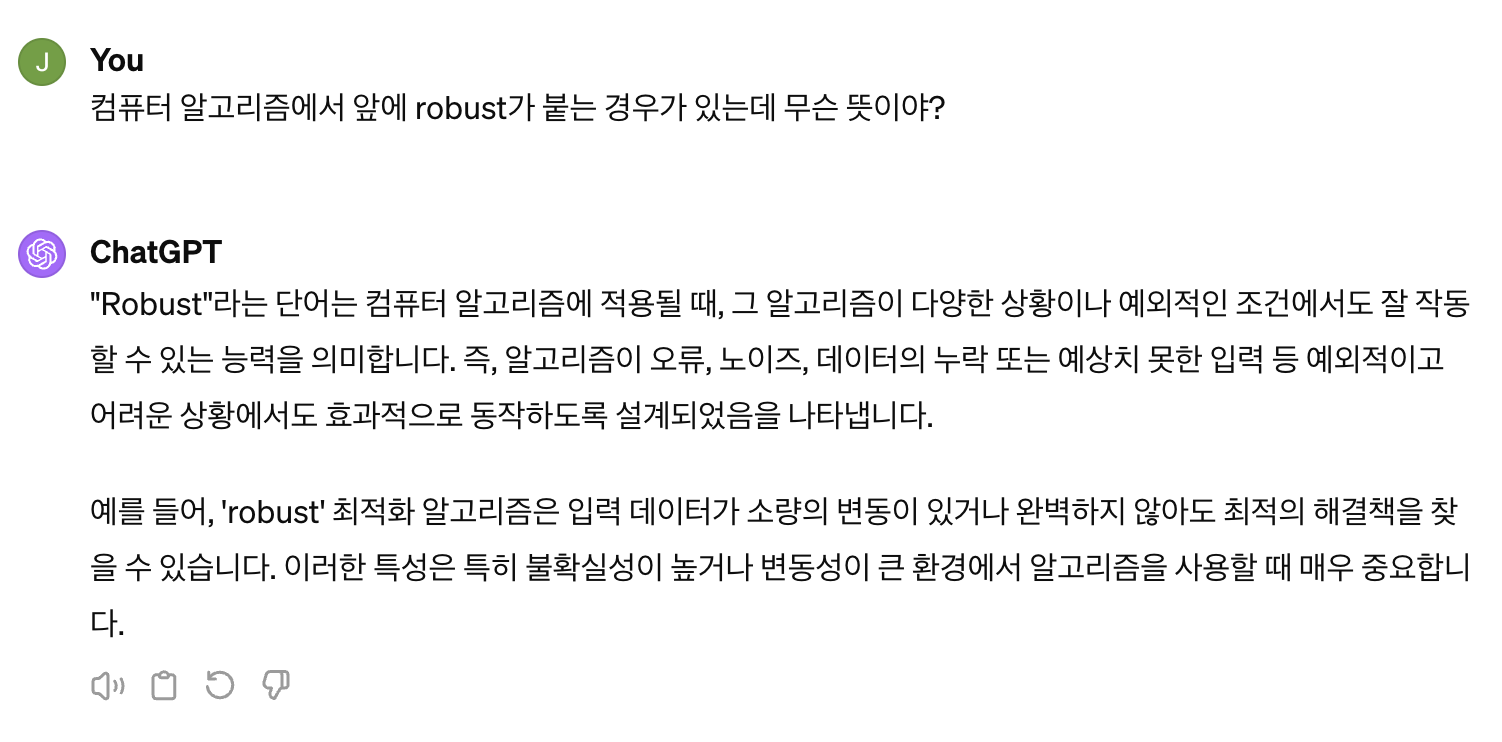 요약하면 예외상황이나 악조건에서도 잘 동작하는 강건한 알고리즘이라는 뜻